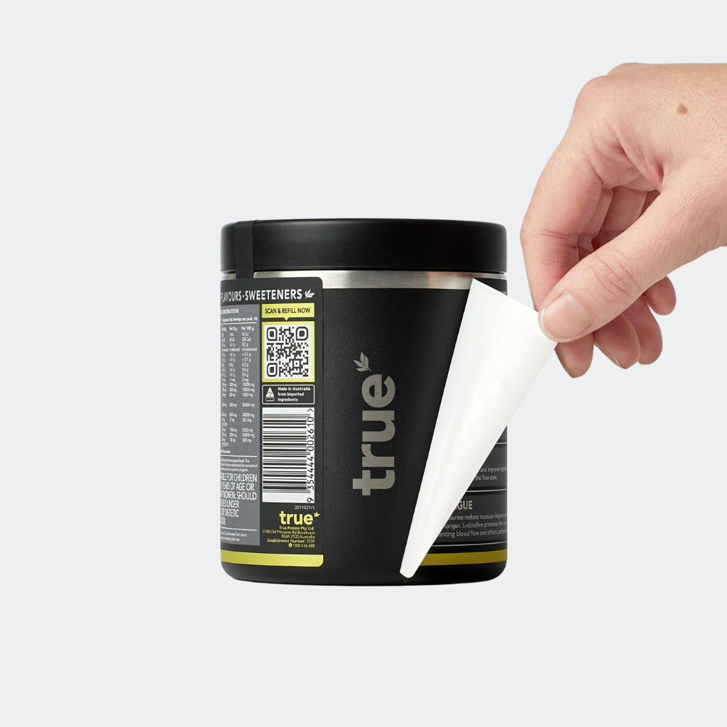 The pursuit of improvement continues with our most requested evolution yet. Featuring a streamlined formula for a smaller serving size, improved taste, better texture, customisable dosage and sleek stainless-steel tin, new True Pre is the next generation in True performance.