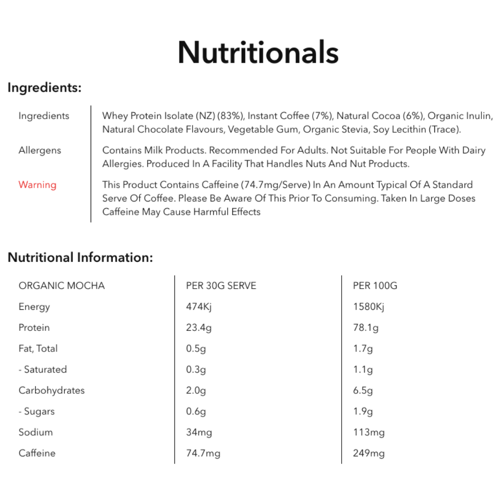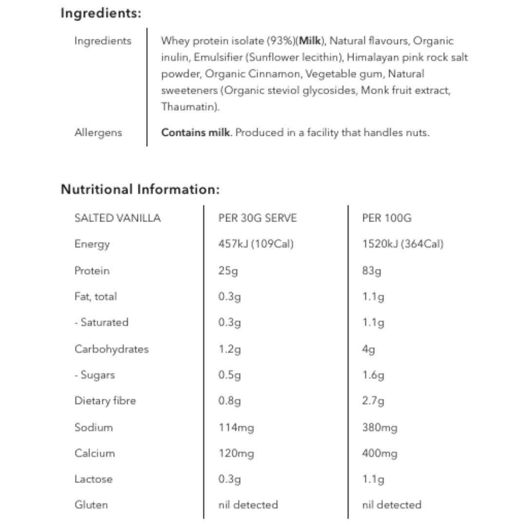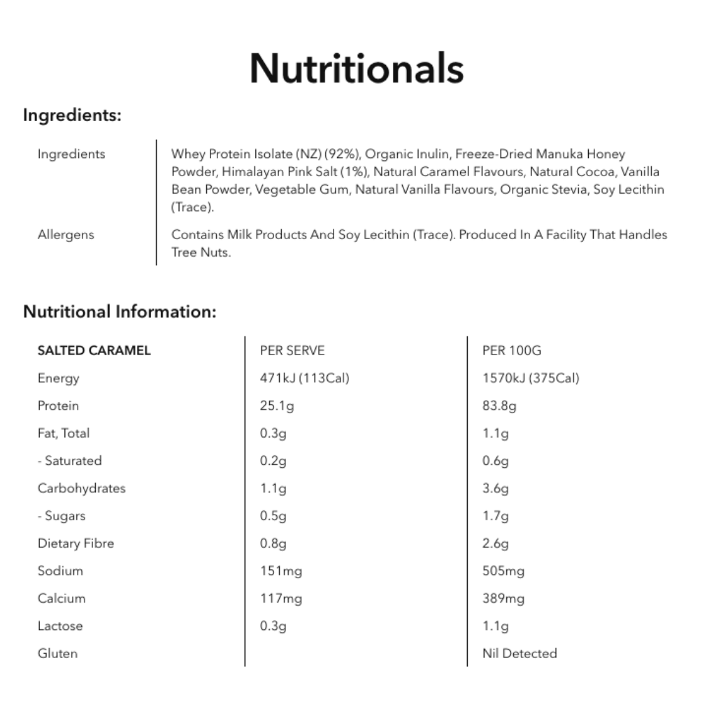 Flavours available: Rich Chocolate, French Vanilla, Salted Caramel, Mocha, Banana & Honey, Choc Peanut Butter.